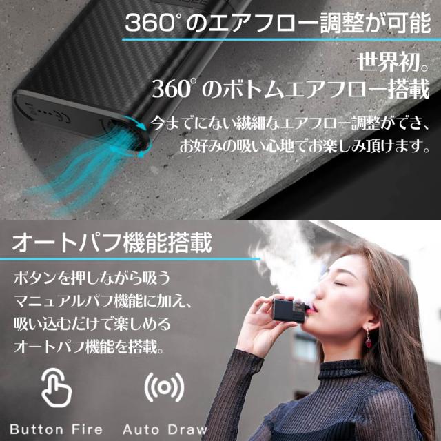 世界初!360°のボトムエアフローを搭載しており、今までにない繊細なエアフロー調整ができ、お好みの吸い心地でお楽しみ頂けます。