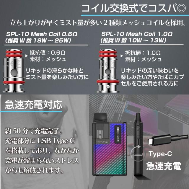 コイル交換式を採用しており、カートリッジを丸ごと交換する必要がなくなりコストパフォーマンスが上がっています。