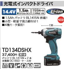 [税込新品]マキタ14.4V充電式インパクトドライバーTD134DSHXバッテリ.充電器.ケース付【ポイント消化にどうぞ】】 マキタ 充電タイプオフィスに工場に職人さんにDIY女子に