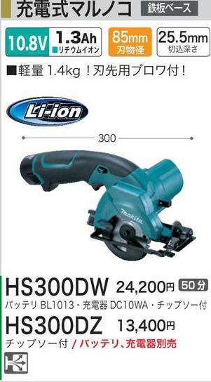 [税込新品]マキタ 10.8V充電式マルノコHS300DZ バッテリ・充電器なし・チップソ付 丸鋸/丸ノコ/マルノコ【ポイント消化にどうぞ】 マキタ 充電タイプオフィスに工場に職人さんにDIY女子に