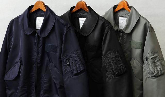 実物品では素材に米デュポン社が開発した難燃繊維である「NOMEX(ノーメックス)」を採用。機内火災時の乗員生存率を上げるための工夫が凝らされています。 WAIPER.incではより普段着として着用しやすいようにMA-1にも採用された、肉厚のしっとりとしたナイロンツイルを使用することでアレンジを加えさせていただきました。