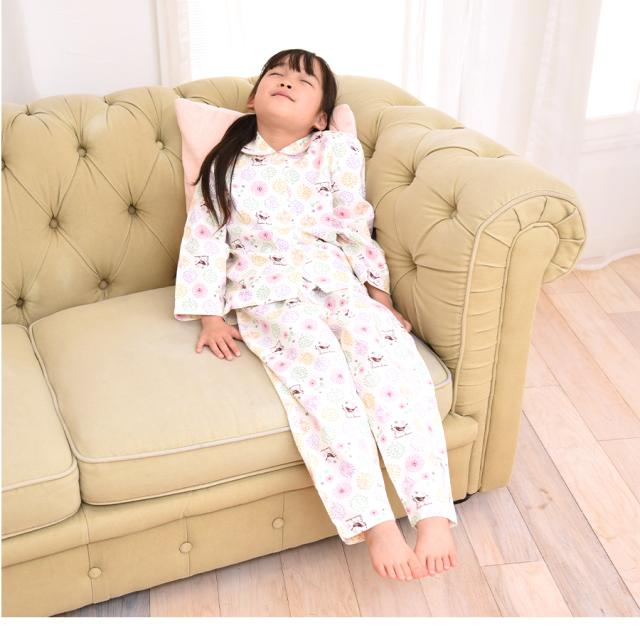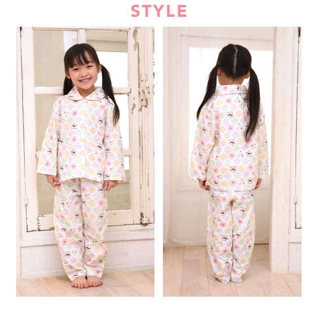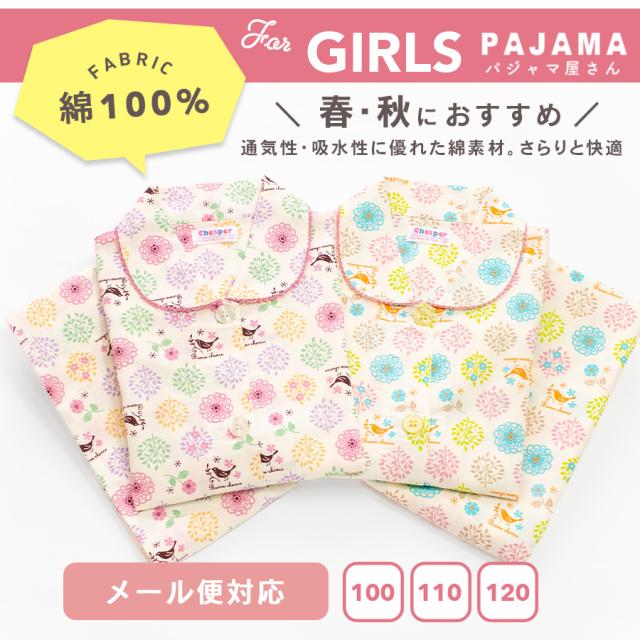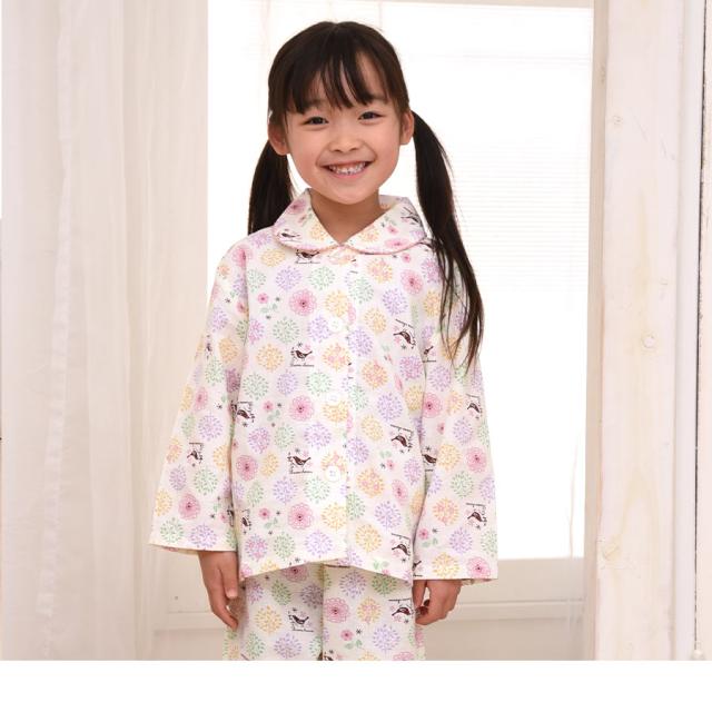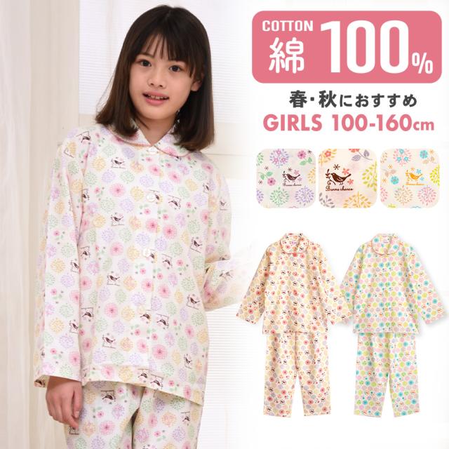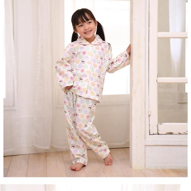 パジャマ キッズ 女の子 綿100% 長袖 春 秋 前開き ボタン 森ガール柄 ミルキーベージュ ミルキークリーム アイボリー 100 110 120 子供 ジュニア ガールズ かわいい おそろい メール便なら 送料無料