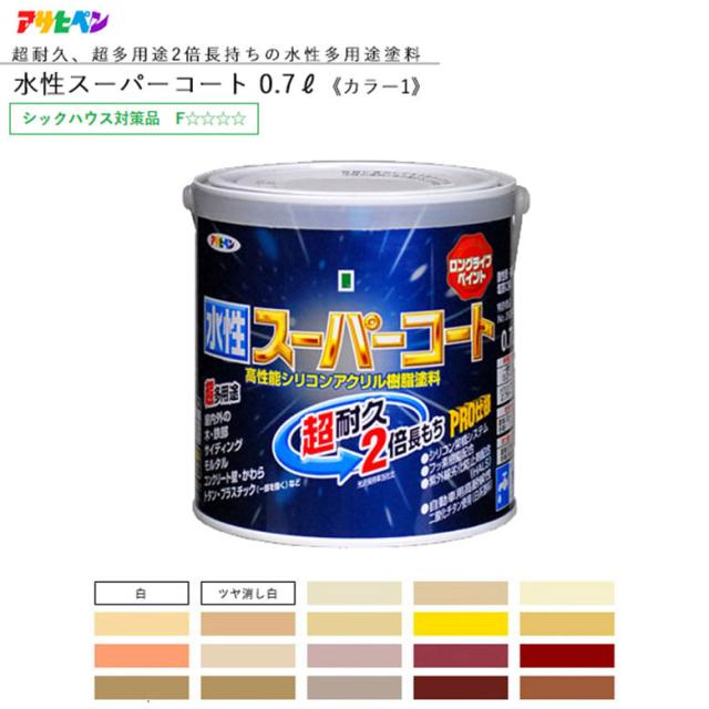 [三太郎の日P10倍!]水性スーパーコート 0.7L 全45色中20色《カラー1》 水性塗料 リフォーム リノベーション リメイク DIY 補修 壁 外壁 ペンキ 屋外 壁紙 家 天井 塗装 塗料 室内壁塗料 模様替え ペイント 塗装用品 塗装用具 デコレ