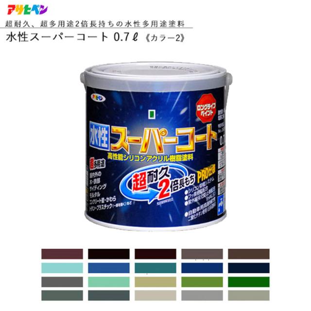 水性スーパーコート 0.7L 全45色中20色《カラー2》 水性塗料 リフォーム リノベーション リメイク DIY 補修 壁 外壁 ペンキ 屋外 壁紙 家 天井 塗装 塗料 室内壁塗料 模様替え ペイント 塗装用品 塗装用具 デコレーション デコ 日曜大工 自宅 修復 補修剤 アサヒペン