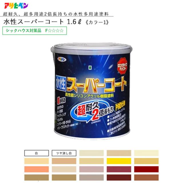 [三太郎の日P10倍!]水性スーパーコート 1.6L 全45色中20色《カラー1》 水性塗料 リフォーム リノベーション リメイク DIY 補修 壁 外壁 ペンキ 屋外 壁紙 家 天井 塗装 塗料 室内壁塗料 模様替え ペイント 塗装用品 塗装用具 デコレ