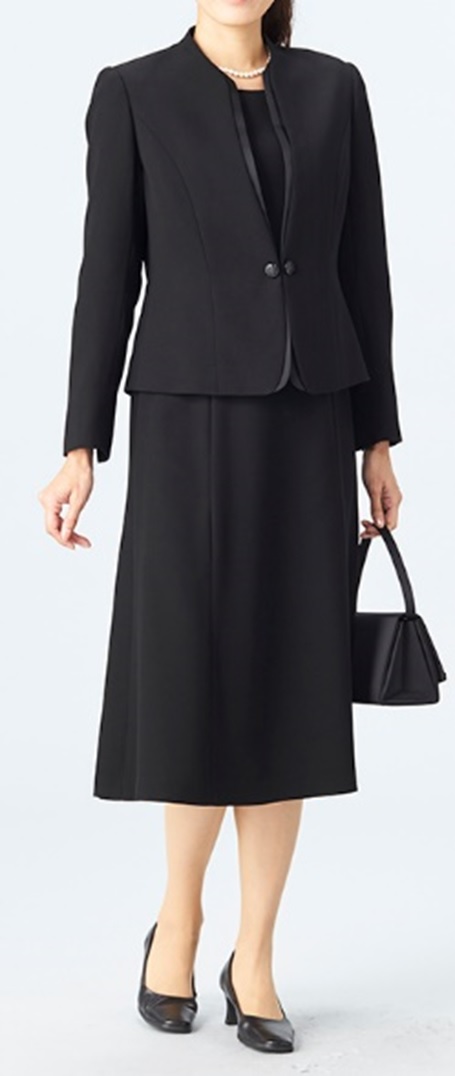 喪服 礼服 ロング丈ワンピーススーツ サテン切替 アンサンブルブラックフォーマル オールシーズン 1508