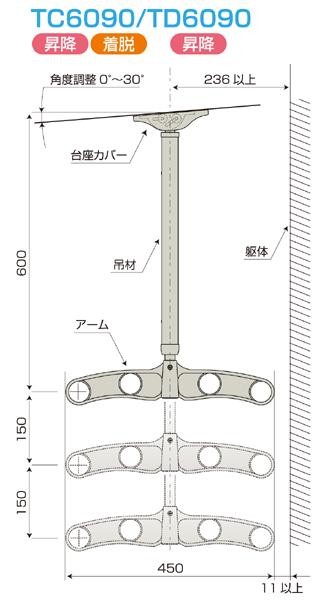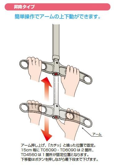 DRY・WAVE 吊下げ型 可動式物干金物 昇降タイプ ロング TD6090【メーカー直送】代引き・銀行振込前払い・同梱不可