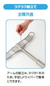 室外の天井部に取り付けてご使用になれる物干し掛けです。テラス・バルコニー、サンルーム(囲いテラス)、ベランダ、カーポートなど生活の様々なシーンでご利用ください。アームは簡単操作で上下可動ができます。アームの組立は、ネジが1本のため、手回しドライバーで簡単にできます。