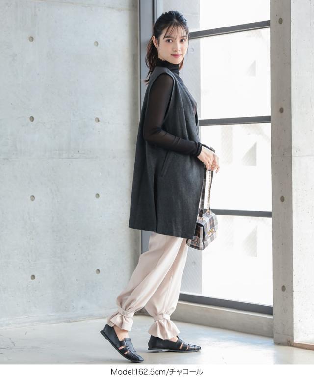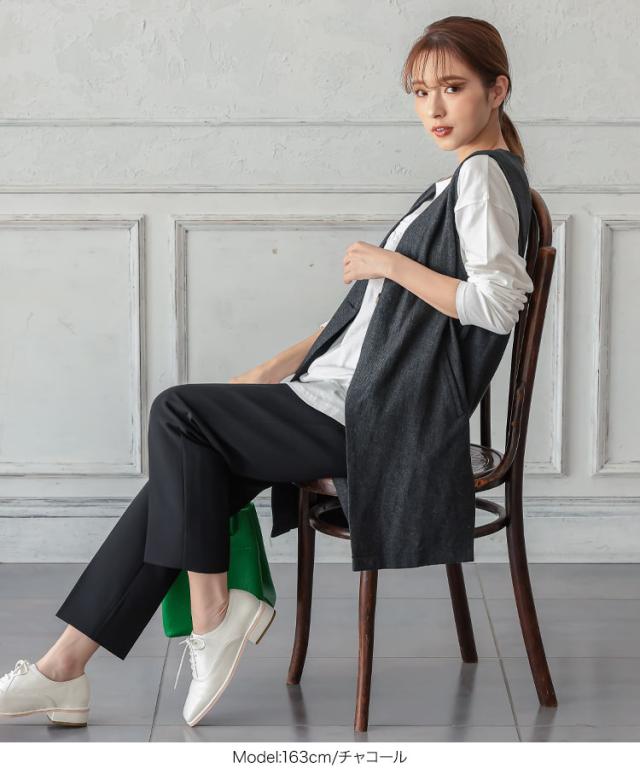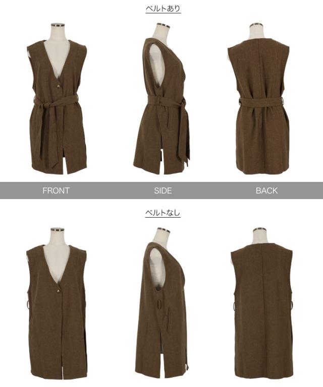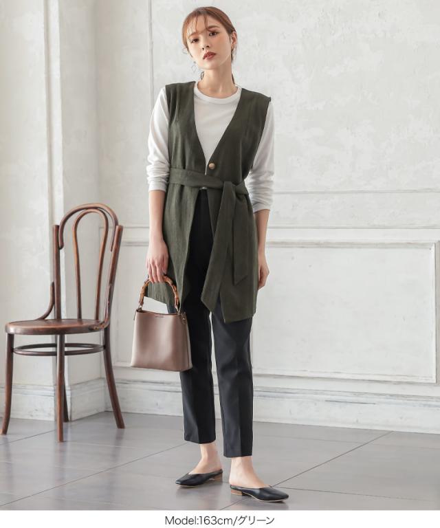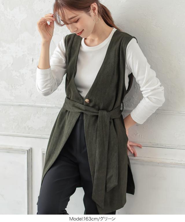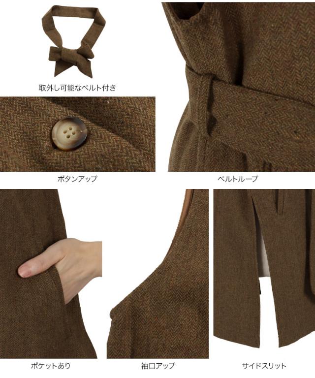 春新作 ベルト付きヘリンボーンジレ K1061 入荷済 レディース アウター ヘリンボーン ウエストマーク 着回し 上品 シック 高見え