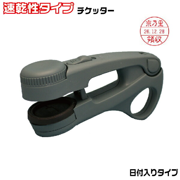 | 特徴 | 日付と社名などを一緒に捺印できる、チケッター・速乾性タイプです。 鉄道会社などに採用されている、プロ仕様のチケッター(スタンパー)です。 早く乾き、連続なつ印性に優れた速乾性インキ【インキ型番Y-72(品番XQR-6N)】を採用しています。 ※本体の形は全く同じですが、 JRで採用されているチケッターのインキ(Y-72SG)とはインキの種類が異なります。 本商品には、必ず【インキ型番Y-72(品番XQR-6N)】を補充してください。 日付はピンセットで差替えることができます。 |
