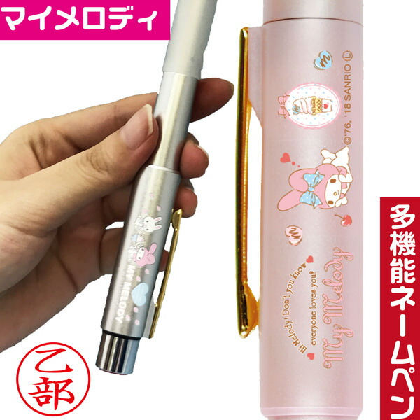 | 特徴 | 当店オリジナルデザインのとっても可愛いマイメロディのネームペンです。 ネーム印と赤・黒ボールペン、シャーペンがひとつになった多機能タイプです。 ※限定デザインとなりますので他店舗様では買えません。 |
