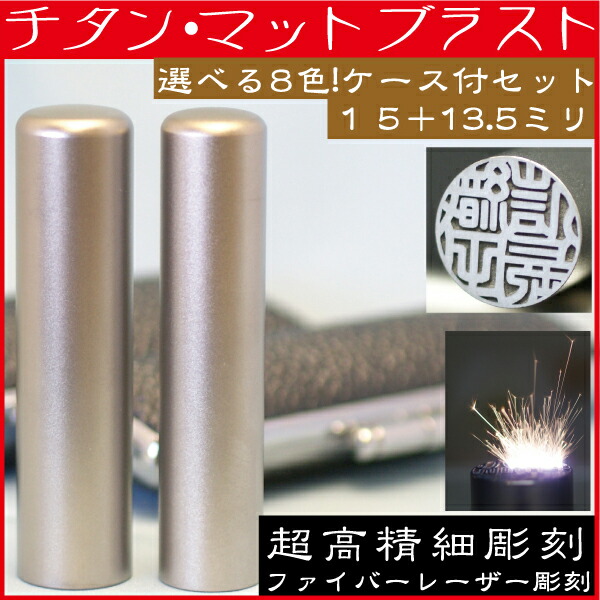 印鑑 チタン・マットブラスト 2本セットM 実印15mm+銀行印13.5mm 印鑑ケース付 ( 赤ちゃん ハンコ おしゃれ ケース フルネーム はんこ 名前 作成 オーダー 判子 送料無料 男性 男の子 子供 実印 女性 出産祝い 銀行 ケース付き 2本 結婚 オーダーメイド シンプル ベビー 印 )