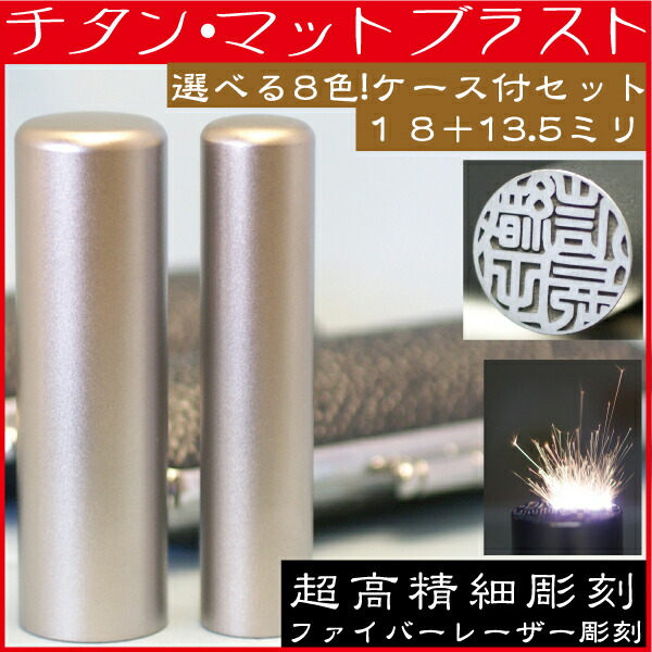 印鑑 チタン・マットブラスト 2本セットLL 実印18mm+銀行印13.5mm 印鑑ケース付 ( 赤ちゃん ハンコ おしゃれ ケース フルネーム 入れ はんこ 名前 作成 オーダー 判子 送料無料 男性 男の子 子供 実印 女性 出産祝い 銀行 印鑑セット 2本 ケース付 結婚 シンプル ベビー 印 )