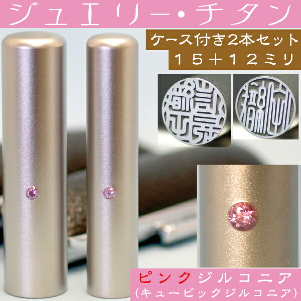 実印 チタン 実印 銀行印 印鑑 セット 『ピンクジュエリー 2本セット 15mm+銀行印12mm』