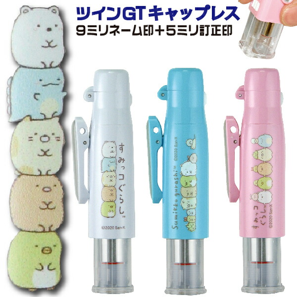 すみっコぐらし ツインGT キャップレス [送料無料] (印鑑 スタンプ キャラクター 訂正印 ツイン印鑑 グッズ おしゃれ ツイン キャップレス印鑑 ハンコ はんこ 看護師 ナースグッズ 浸透印 修正印 タニエバー すみっこぐらし すみっこ すみっコ sumikko かわいい 作成 作る)