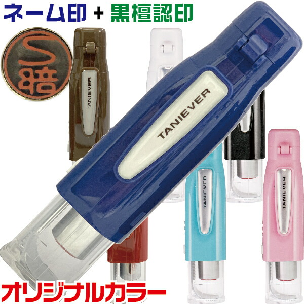 | 仕様 | 印面サイズ:ネーム印9ミリ+黒檀認印10ミリ 書体:6書体(楷書体、古印体、篆書(てんしょ)体、行書体、丸ゴシック体、ポップ体) ※黒檀認印は古印体のみとなります。 インク:ネーム印は6色から選べます。 ・専用インクを補充可能です。→タニエバー ネーム印・スタンペン補充インク ●本体カラー/7色から選べます。 定番カラー/ブルー・ピンク・ホワイト・ブラック オリジナルカラー/ストロベリーレッド・ショコラブラウン・ロイヤルブルー 印面パターン:ネーム印3パターン、黒檀認印は1パターン (作成できるのは人名のみとなります。※黒檀認印は「人名漢字の姓」のみが作成可能です。) サイズ:23×25×95ミリ・19g |
