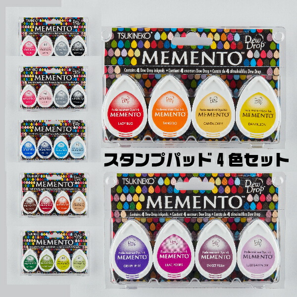 メメント デュードロップ 4色セット スタンプパッド ツキネコ TSUKINEKO メメントデュードロップ スタンプ台 | めめんと スタンプアート スタンプ デザイナー 文房具 作家 鮮やか 手作り 絵葉書 カード 雑貨 クラフト 速乾 オシャレ イラスト
