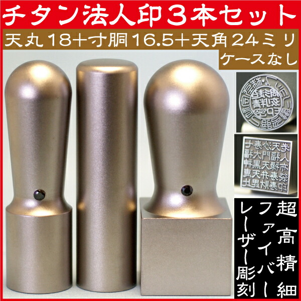法人印鑑 会社印鑑 チタン 実印+銀行印+角印 会社設立 3本セット 天丸+寸胴+天角 ( 印鑑 ハンコ おしゃれ はんこ セット 作成 オーダー 法人 判子 会社 四角 社判 実印 角印鑑 会社印 丸印 法人印 ビジネス 銀行 会社実印 社印 3本 法人銀行印 オーダーメイド 代表者印 )