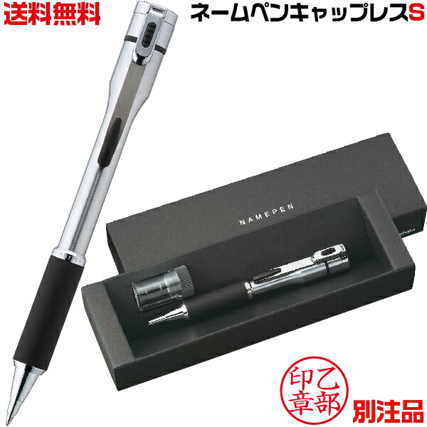シャチハタ ネームペン キャップレスS シルバー 別注品 送料無料 冬ギフト クリスマス プレゼント 実用的 ナース 看護師 文房具 文具 シャチハタネーム印 黒ボールペン 印鑑付きボールペン しゃちはた ハンコ付きボールペン スタンプ ハンコペン 印鑑ボールペン ネーム印