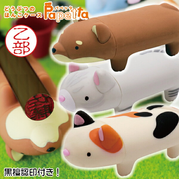 印鑑 どうぶつのはんこ パペッタ Papetta 印鑑とケースのセット サンビー [送料無料] ( プレゼント かわいい 印鑑ケース グッズ おしゃれ 朱肉 ハンコ はんこ 携帯 猫グッズ 作成 認印 猫 丸印 判子 ハンコケース 動物 ネコ ケース付き ねこ 個人 パペット 可愛い 作る )