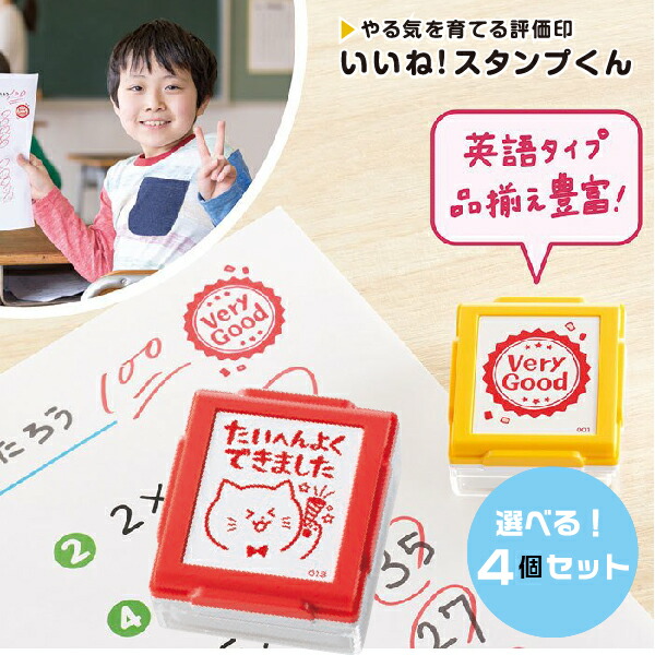 評価印 [いいね!スタンプくん] 4個セット | [送料無料] シャチハタ 印鑑 かわいい キャラクター ハンコ しゃちはた 先生 スタンプ はんこ 小学生 よくできました 文房具 判子 オーダー イラスト できた 子供 せんせい 塾 ごほうびスタンプ