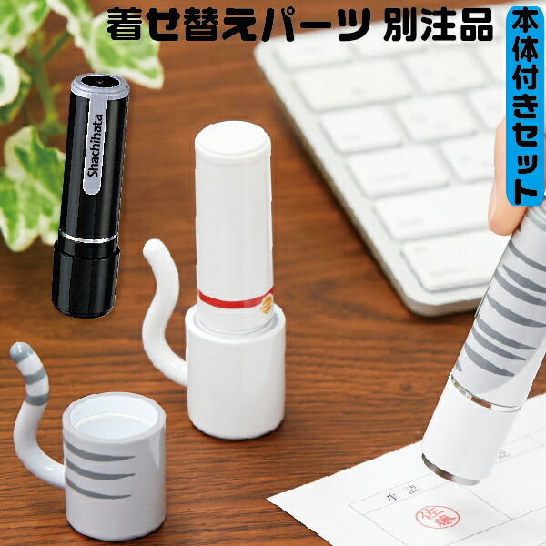 おめかしっぽ ネーム9 別注品 ねこ 着せ替えパーツ[送料無料] [別注品本体+着せ替えパーツ付きセット] 猫 にゃんこ 三毛 ミケ グッズ シャチハタ 印鑑 プレゼント しゃちはた かわいい ハンコ 着せ替え はんこ 猫グッズ ホルダー 判子 小物 ネコ キャップカバー きせかえ