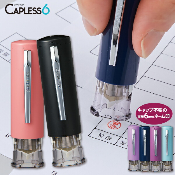 ワンタッチで捺印できるキャップレスの印鑑「キャップレス6」です。