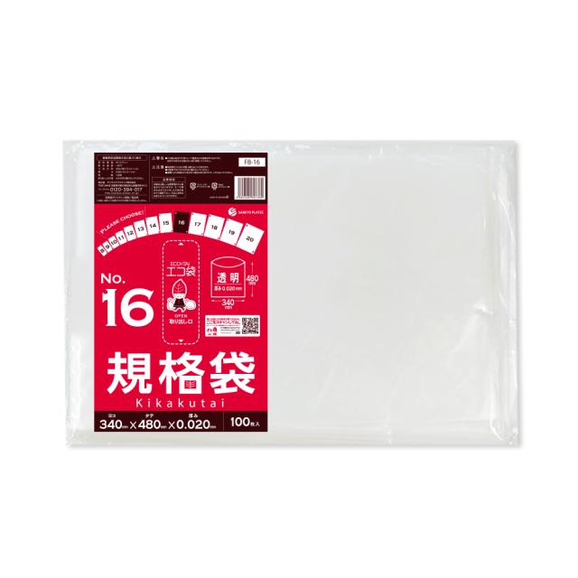 【バラ販売】FB-16bara 規格袋 16号 0.020mm厚 透明 100枚 食品検査適合 RoHS指定