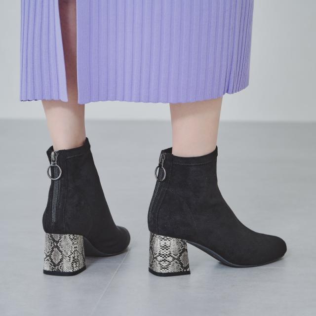 伸縮性のある素材を使用し履きやすさにこだわったショートブーツ。