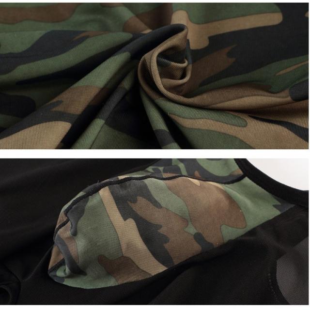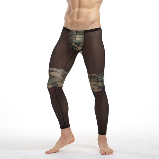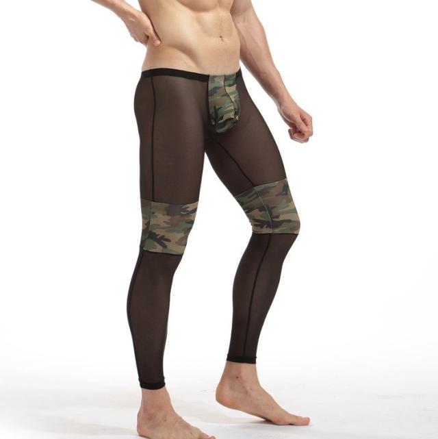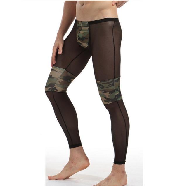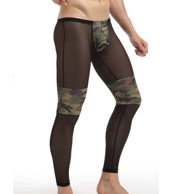 タイツ メンズ 夏仕様 メッシュ素材 部分迷彩柄 涼感 セクシーレギンズ エンスタイル mi438