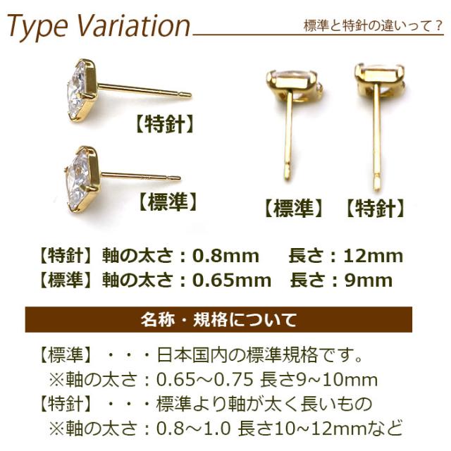 | つけっぱなしにする \セカンドピアスにおすすめ/ 軸太0.8mm/長さ12mmの 特針タイプはこちら>> |