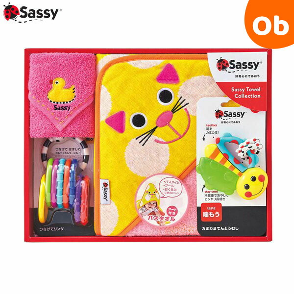 サッシー 出産祝いおくるみセット キャット 4点(フード付きバスタオル・ミニタオル・歯固め・リング)Sassy【送料無料 沖縄・一部地域を除く】