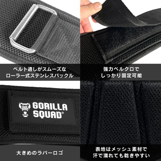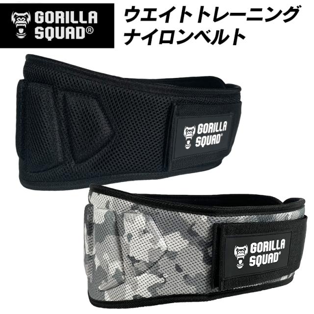 ウェイトリフティングナイロンベルト パワーベルト トレーニングベルト パワーリフティング 筋トレ 筋力トレーニング ウエイトトレーニング スクワット デッドリフト トレーニンググッズ 腰サポート 腰サポートベルト GORILLA SQUAD ゴリラスクワッド