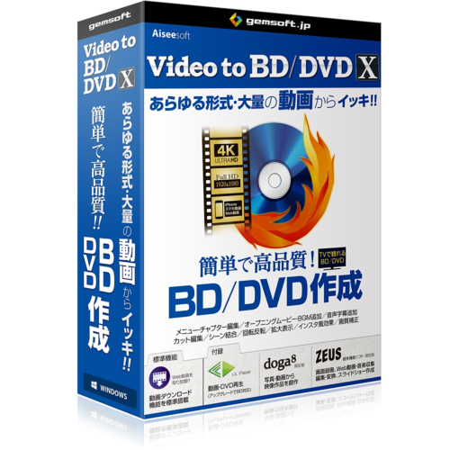 ◆「あらゆる形式・大量」の動画をイッキ!! にBD/DVD にします。◆ オリジナルBD/DVDを作成!・メニュー作成:豊富なテンプート編集?完全オリジナルまで。・チャプター生成:長編動画を自在に分割、見たいシーンがすぐ見れる。・オープニングムービー・BGM追加、音声字幕編集。◆ビデオ編集機能はシンプルで高性能!・スマホで縦撮りしたビデオの向き修正。・必要箇所の抜き出し、拡大表示、シーン結合。・画質補正、インスタ風効果、他。◆ 動画ダウンロード。GA0023