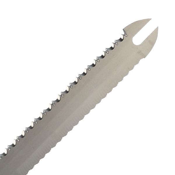 大きなギザ刃で、パンもカットできます。小さなギザ刃で繊維の多い鶏肉やハム等をカットすることもでき、大小のそれぞれの特長を生かして、使い分けができます。