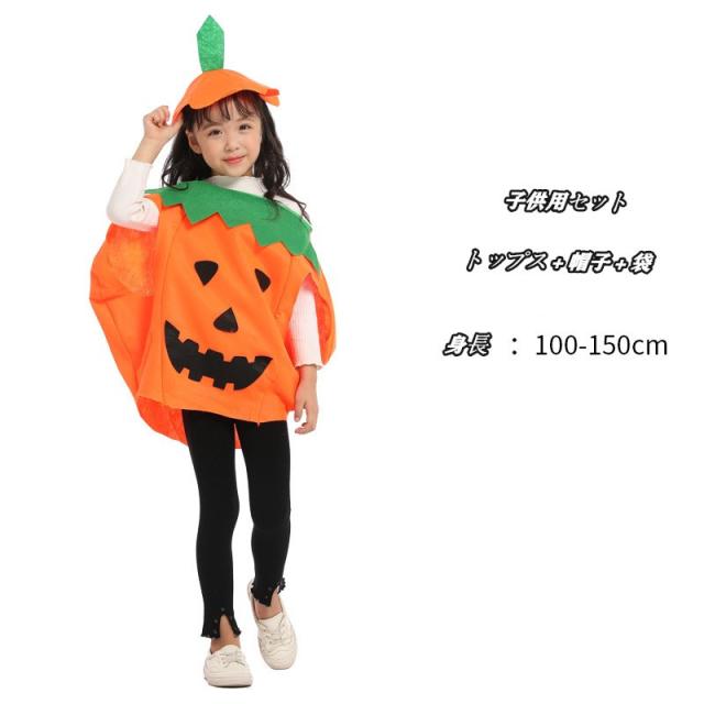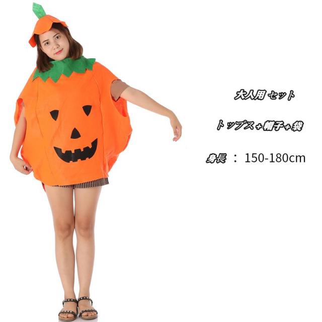 親子ペア カボチャ ハロウィン衣装 キッズ コスチューム 仮装 お化け 変装 可愛い パンプキン 大人 子供 ダンス衣装 着ぐるみ キャラクター衣装
