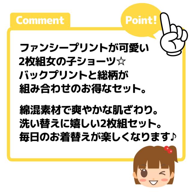 【送料無料】2枚組セット 女児 キッズ ショーツ 綿混 総柄 バックプリント 動物 りんご 肌着 下着 インナー 子供 女の子 110cm 120cm 130cm yg-0722【メール便対応】