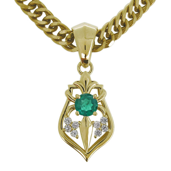 メンズ ネックレス 18k 18金 喜平 エメラルド 百合の紋章 ペンダント