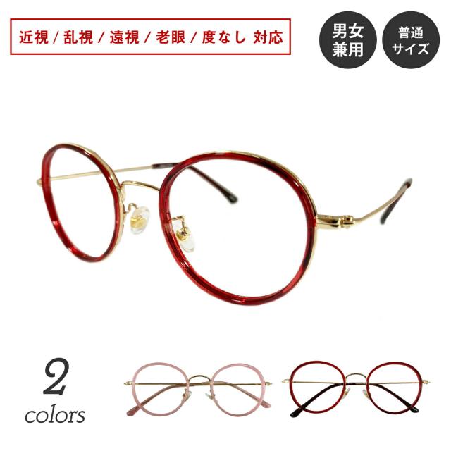 【残り1本】度付き メガネ ボストン コンビネーション フレーム 鼻パッド付き 丸眼鏡 度あり 度入り 近視 遠視 乱視 老眼 度なし 伊達 だて 眼鏡 めがね レンズ セット 軽い ズレ防止 レディース メンズ 男性 女性 おしゃれ かわいい かっこいい 赤