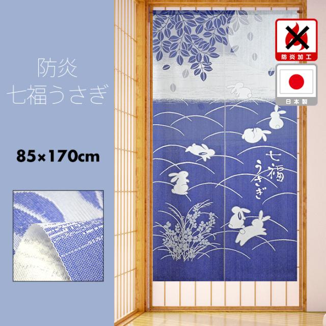 のれん 暖簾 おしゃれ カーテン 間仕切り 仕切りカーテン 目隠し 防炎カーテン おしゃれ ロング 和風 和柄 和モダン 和風暖簾 防炎 燃えにくい 防炎加工 安心安全 飛翔 吉祥 兎 七福うさぎ 85×170cm 日本製 国産