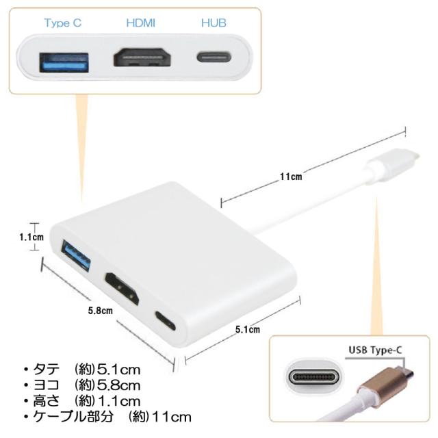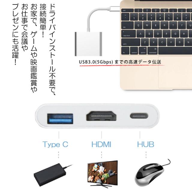4K対応 HDMI 変換 アダプター 送料無料 USB 3ポート 映像出力 パソコン ケーブル MacBook pro アルミ シルバー Apple Notebook