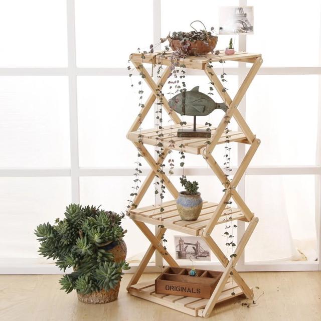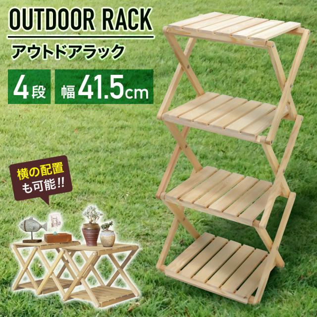 折り畳み式 4段 木製ラック ウッドラック 多機能 インテリア アウトドア レジャー 庭 ガーデニング シューズラック 収納 玄関 コンパクト
