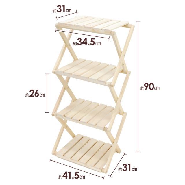 4段 木製 折り畳みラック