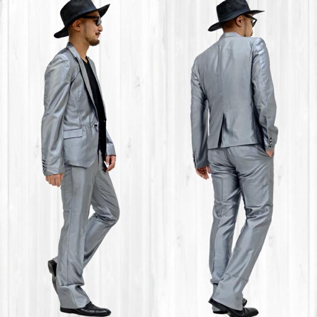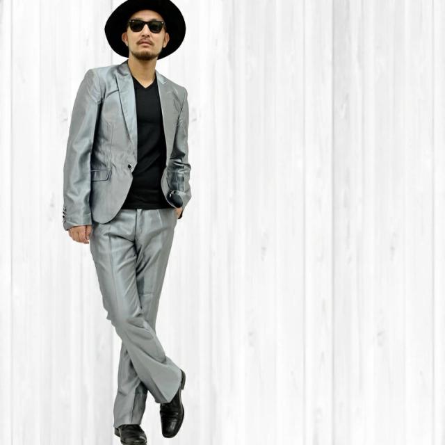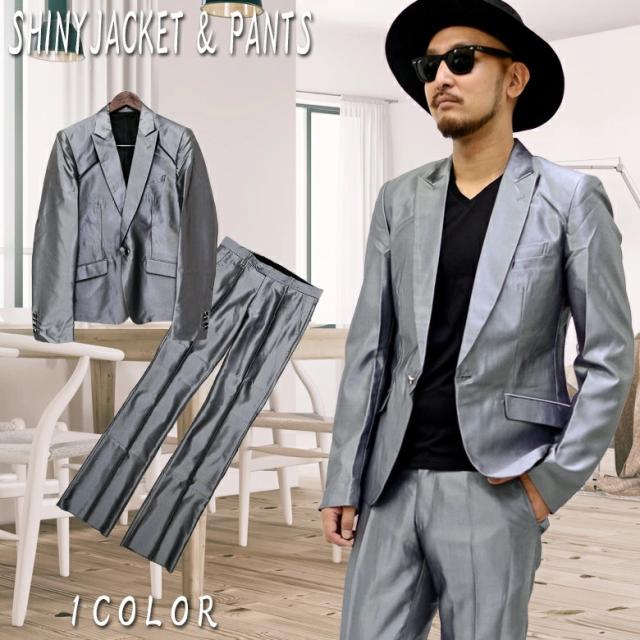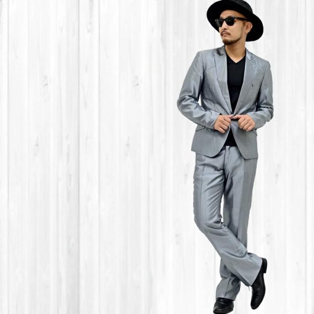 【閉店セール】シャイニーピークドラベルシャンブレー スーツ グレー013s6392-07 メンズ カジュアル ビター BITTER お兄 ゴージャス メンズファッションメンズカジュアル スーツ 冠婚葬祭 ホスト 卒業式 二次会 パーティー M L