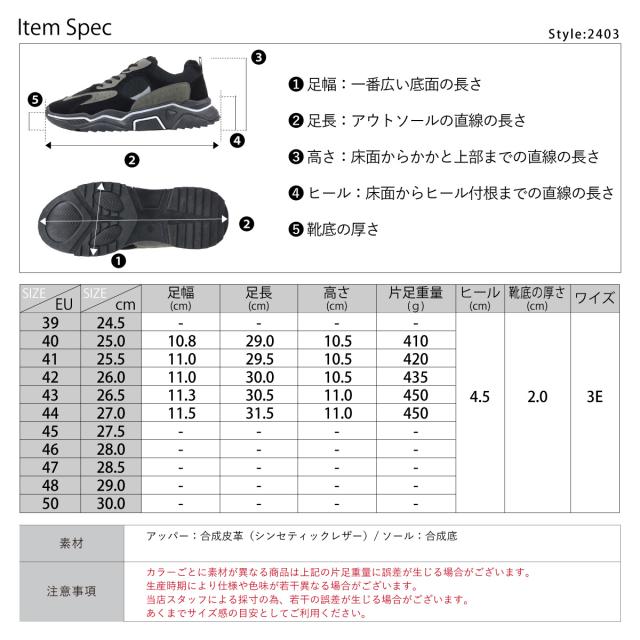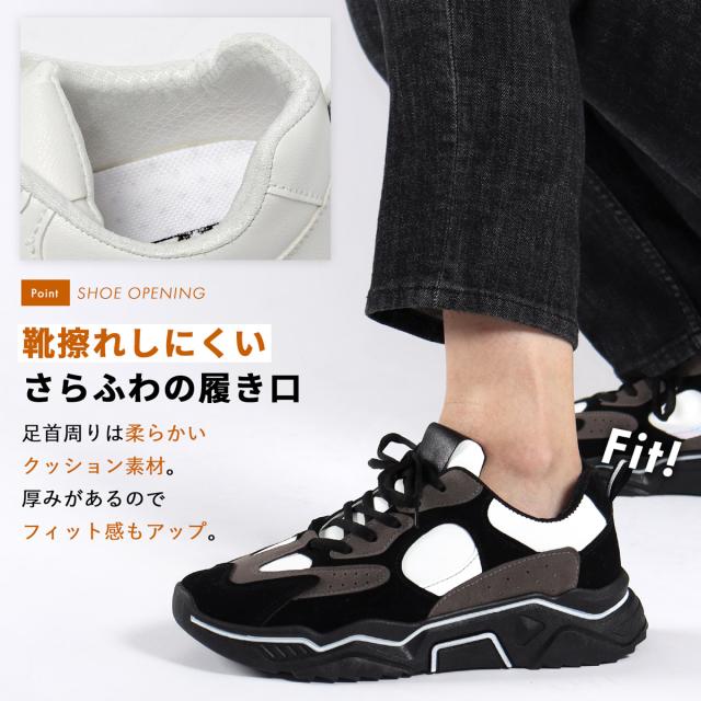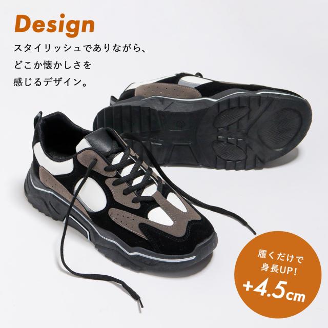 スニーカー ダッドスニーカー プラットフォームソール 厚底 レースアップ メンズ 紳士靴 靴 4.5cmヒール 25cm〜27cm 黒 ブラック 白 ホワイト AAA+ No.2403