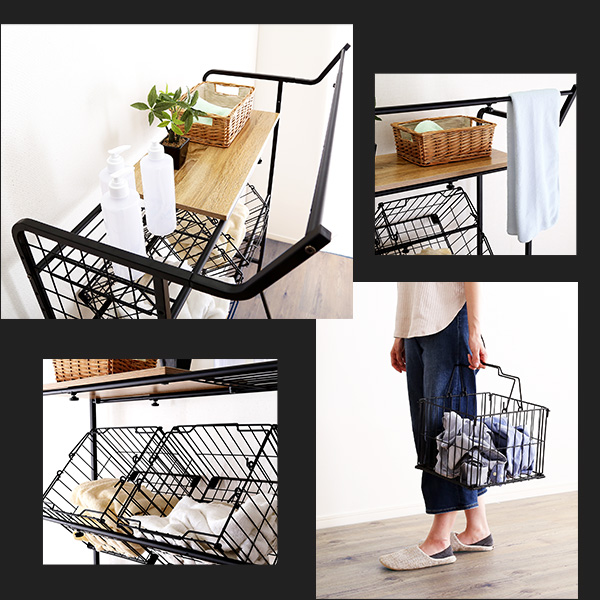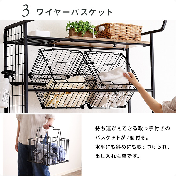 持ち運びできる取っ手付きのバスケットが2個付き!