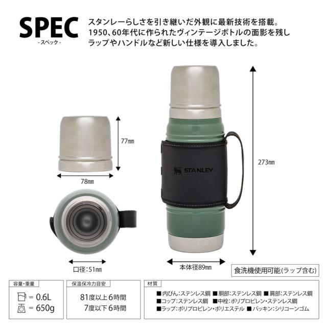 STANLEY スタンレー レガシー真空ボトル 0.6L 水筒 保温 保冷 アウトドア キャンプ スクリュー コップ付き