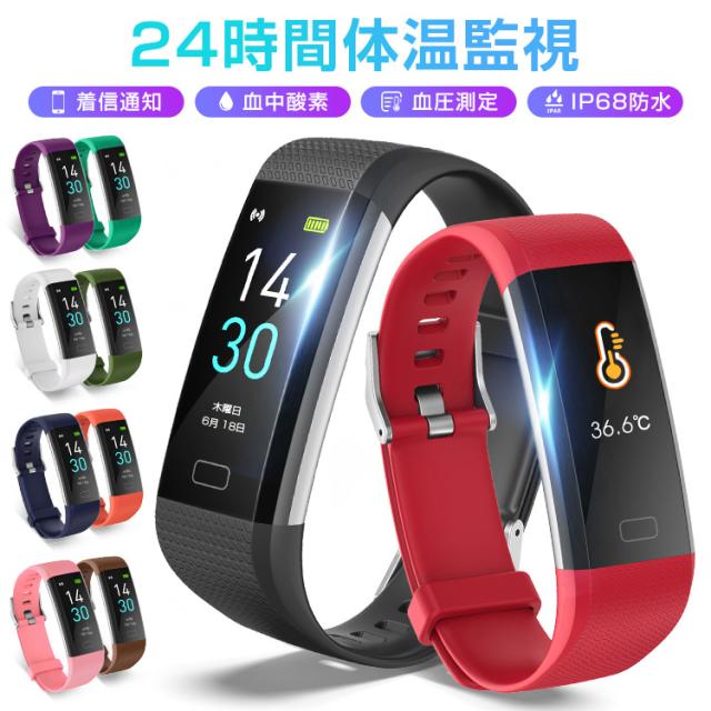 スマートウォッチ 体温測定 血中酸素濃度 血圧 スマートブレスレット リストバンド 大画面 活動量計 歩数計 心拍 IPX68防水 睡眠 飲水 通知 S5 技適認証 送料無料