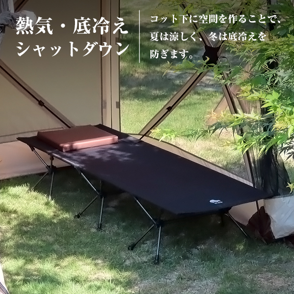 コット下に空間を作ることで、夏は涼しく、冬は底冷えを防ぎます。