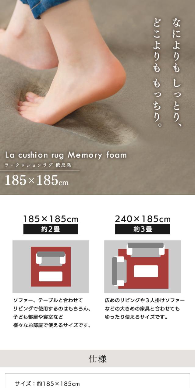 この厚みがクセになる、暮らし彩る ラ・クッションラグ低反発タイプ。